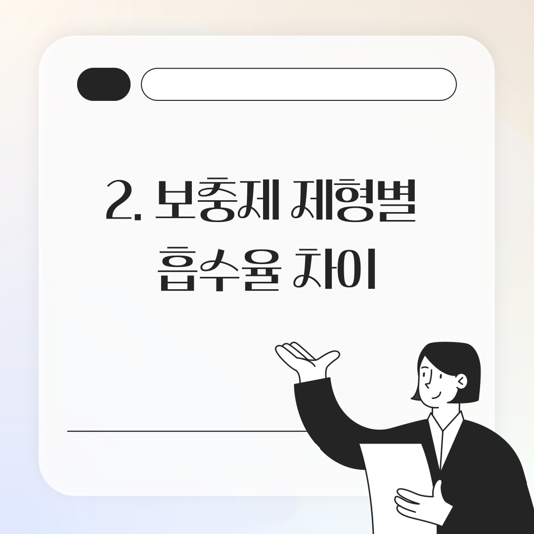 - 무조건 높은 흡수율 수치보다는, 안정성과 흡수성을 모두 고려