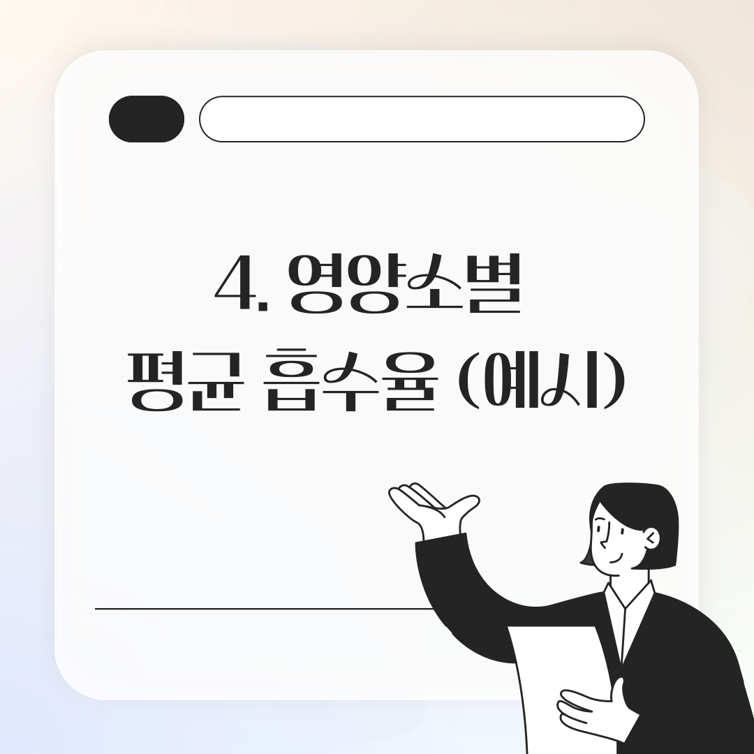 이처럼 영양소마다 체내 흡수율이 크게 다릅니다, 단순히 함량만 보고 판단하지 말고 흡수율까지 고려한 선택이 중요해요.