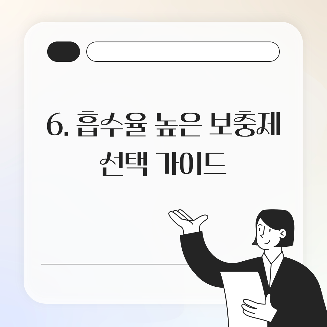 | 소화기관 건강 | 위장 상태가 안 좋으면 보충제의 흡수가 잘 안 될 수 있어요. |