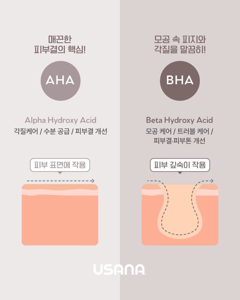✔ AHA(알파하이드록시산) – 부드러운 각질 제거로 매끈한 피부 결