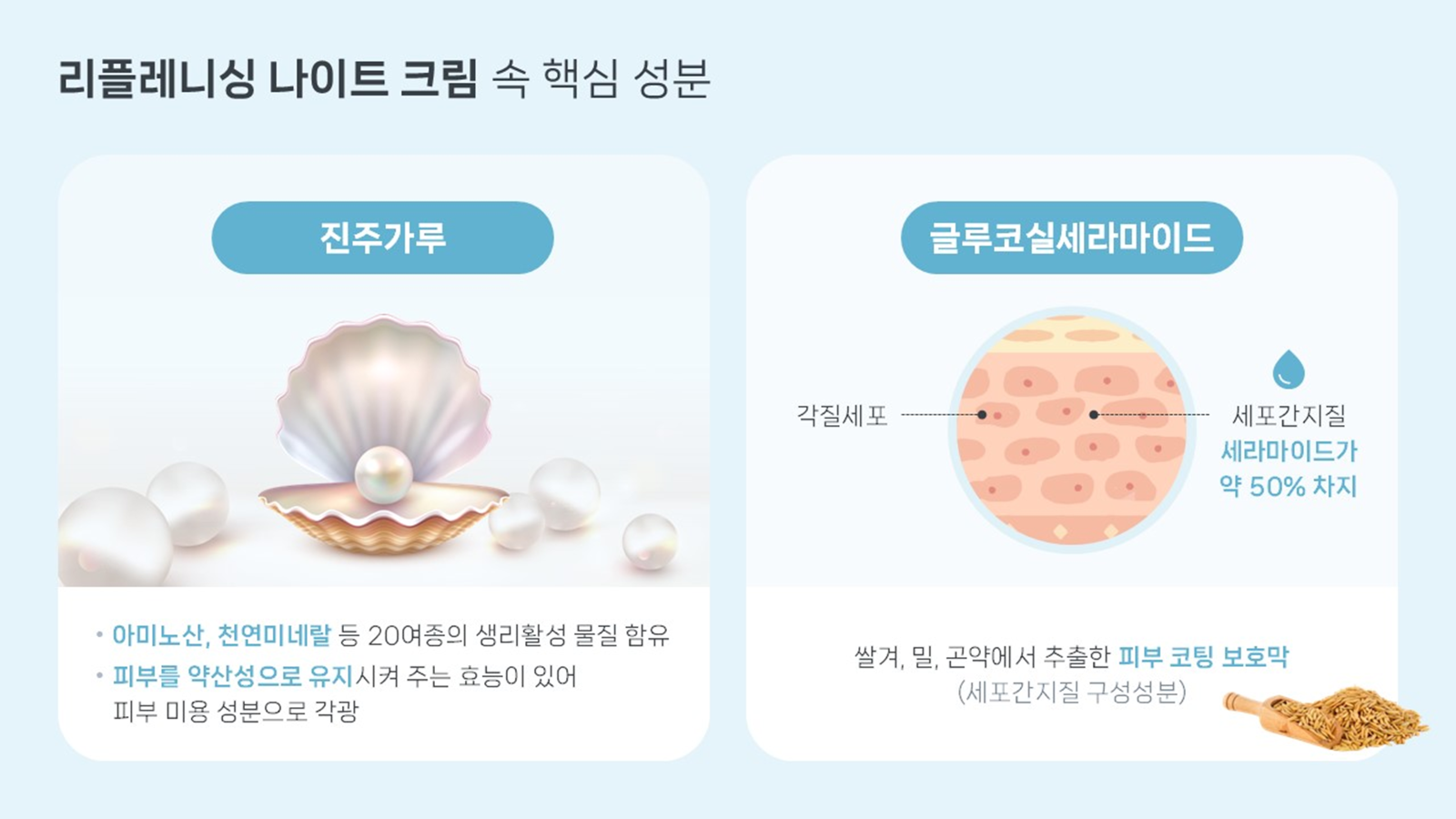 민감성·건성 피부도 부담 없이 사용할 수 있는 유사나 리플레니싱 나이트 크림. 올리볼 복합 추출물, 진주가루, 세라마이드 등 피부 활력 성분 가득! 매끈하고 탄력 있는 피부를 위한 밤 전용 안티에이징 케어 제품을 소개합니다.