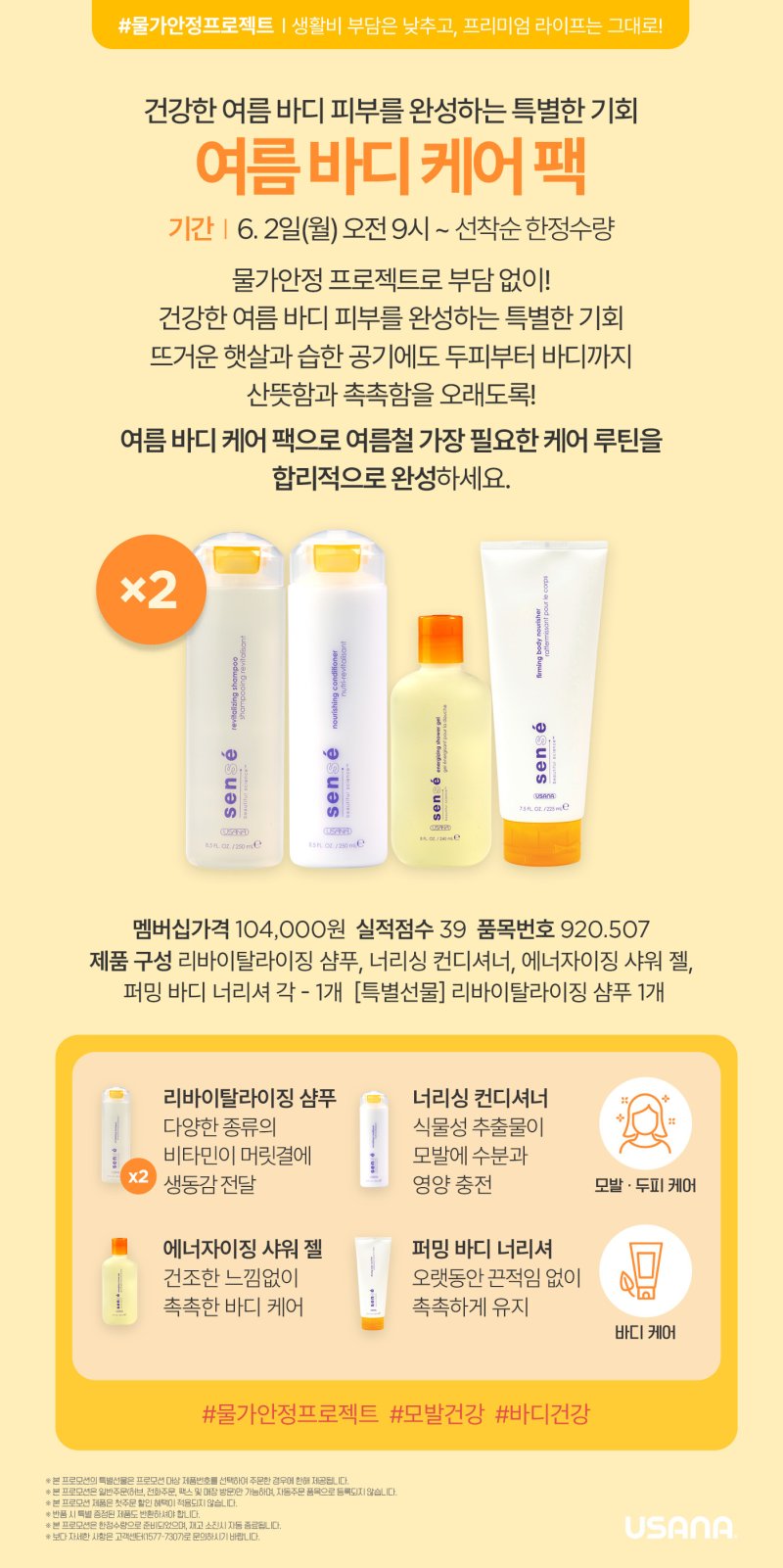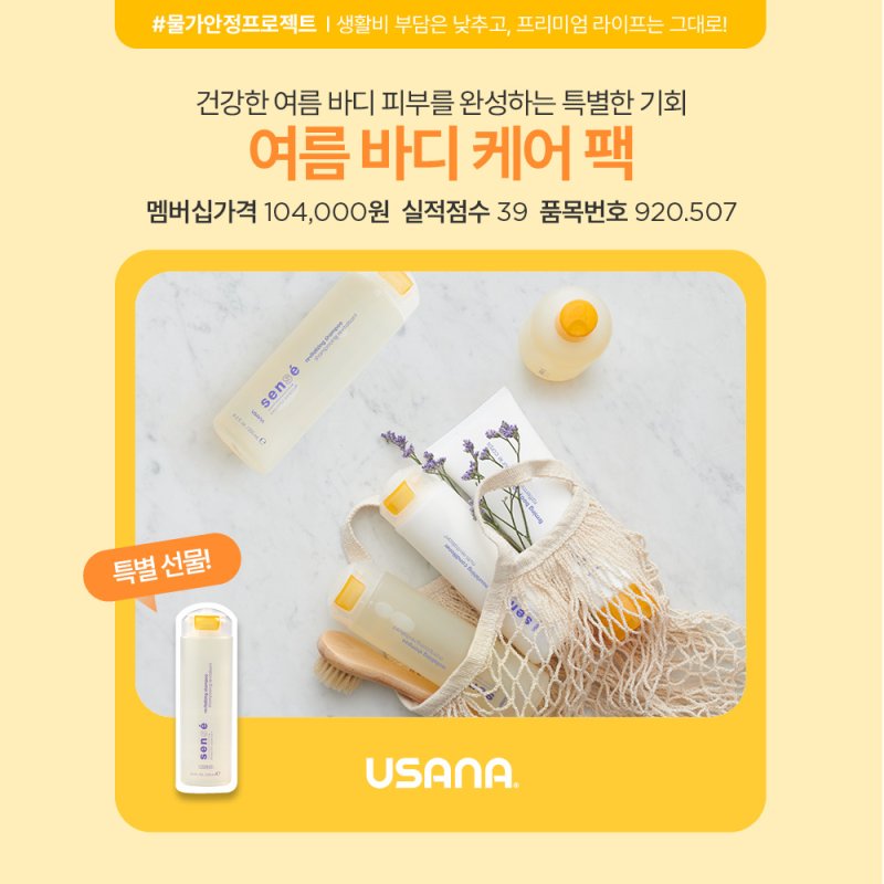 이번 유사나의 물가안정 프로젝트는 바디케어와 장 건강, 두 가지 케어 루틴을 한 번에 챙길 수 있는 절호의 기회입니다.