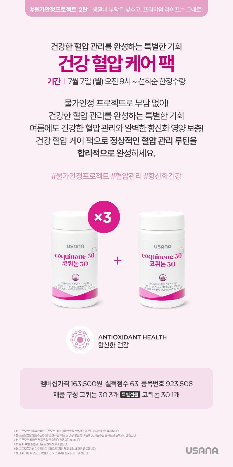 | 건강 혈압 케어 팩 | 코퀴논 30 × 3 | 163,500원 | 코퀴논 30 1개 |