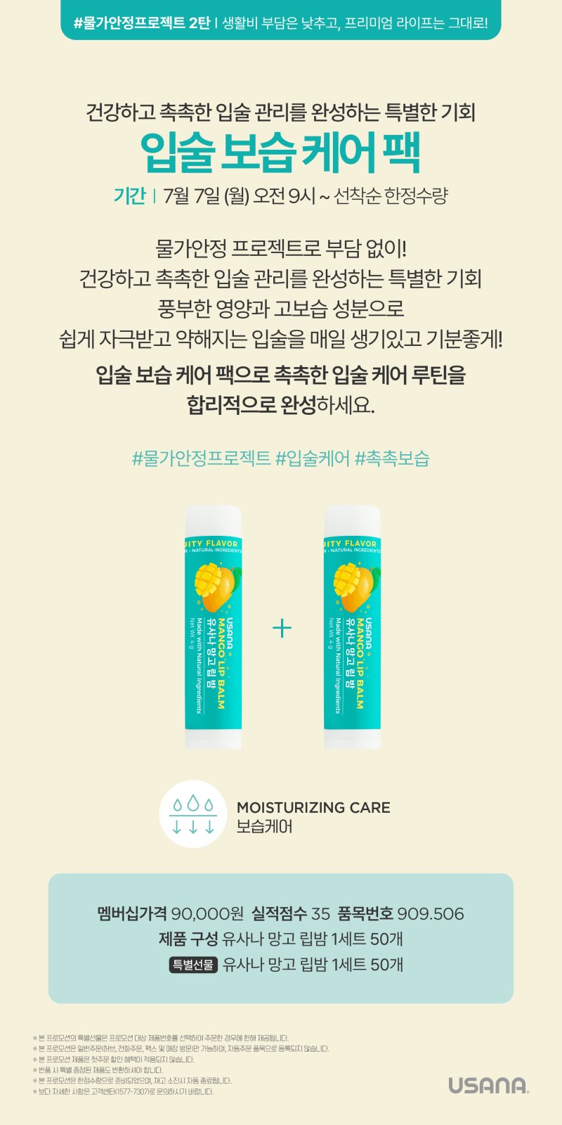 | 입술 보습 케어 팩 | 망고 립밤 세트 (50개) | 90,000원 | 립밤 세트 1개 |