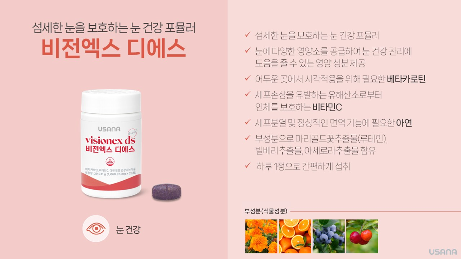 눈 건강을 위해서는 영양소를 꾸준히 섭취하는 것이 중요한데요. 오늘 소개할 **유사나 비전엑스 디에스(USANA Visionex DS)**는 필수 영양소를 풍부하게 함유한 눈 건강을 위한 영양제입니다.