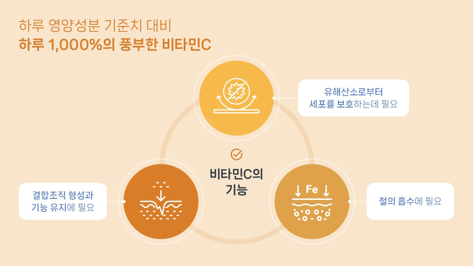 또한 철분 흡수를 돕고, 활성산소로부터 세포를 보호하는 강력한 항산화제이기도 합니다.