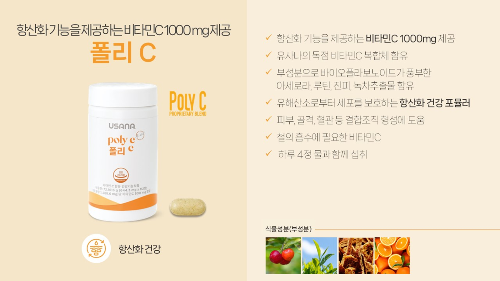 이런 문제를 해결하기 위해 탄생한 제품이 바로 유사나의 중성 비타민C, 폴리C입니다.