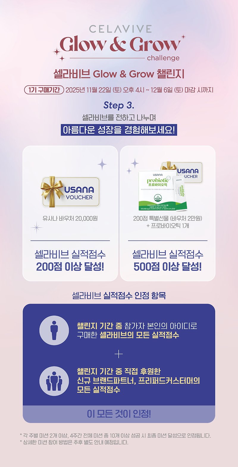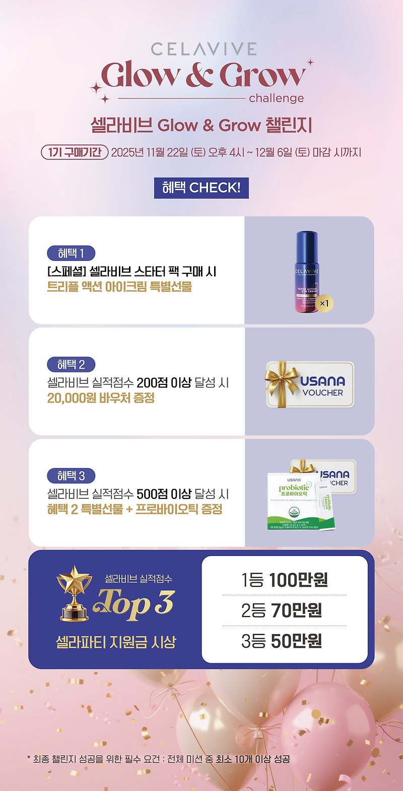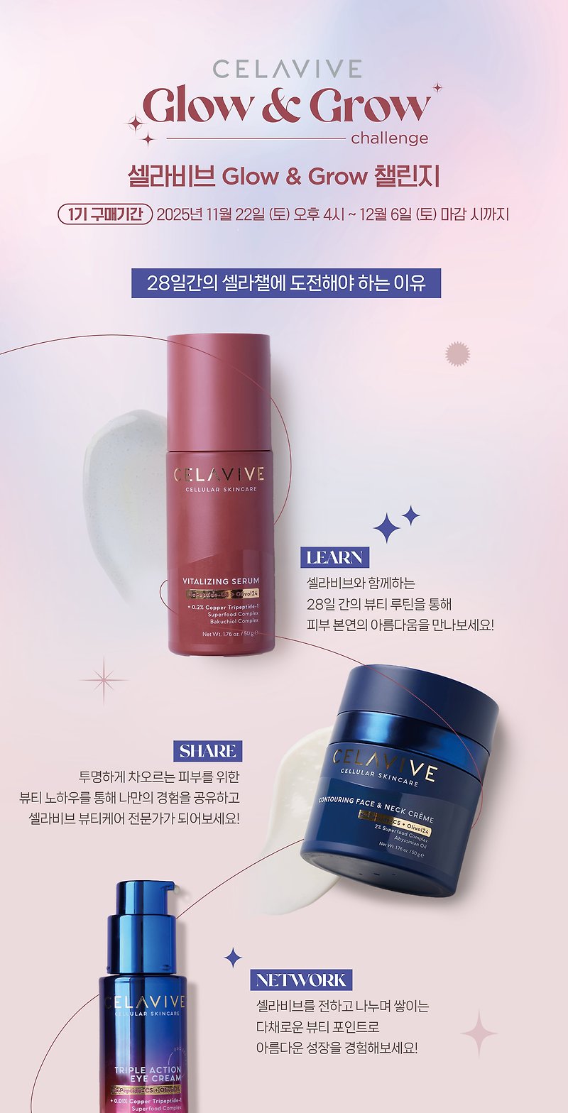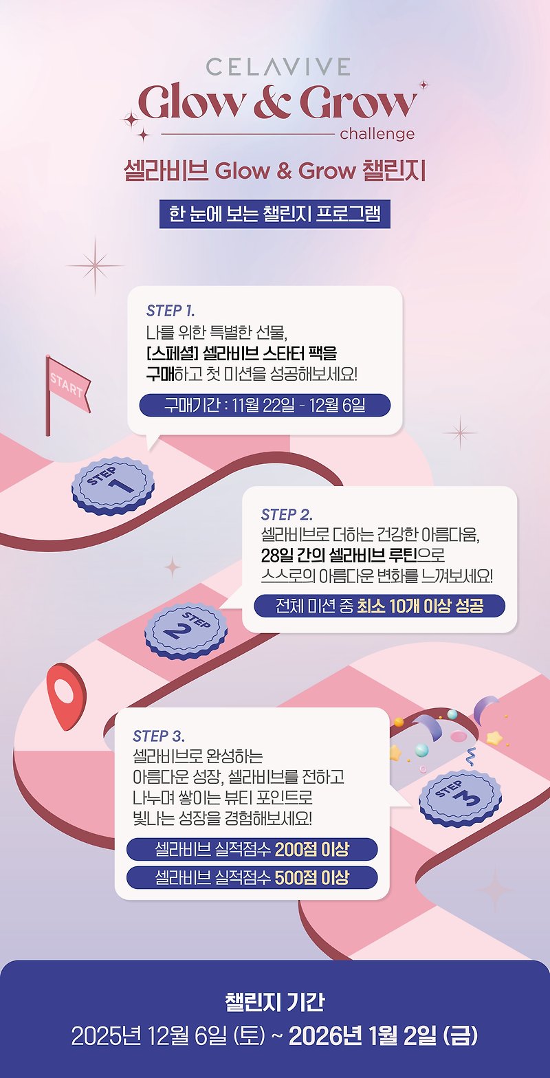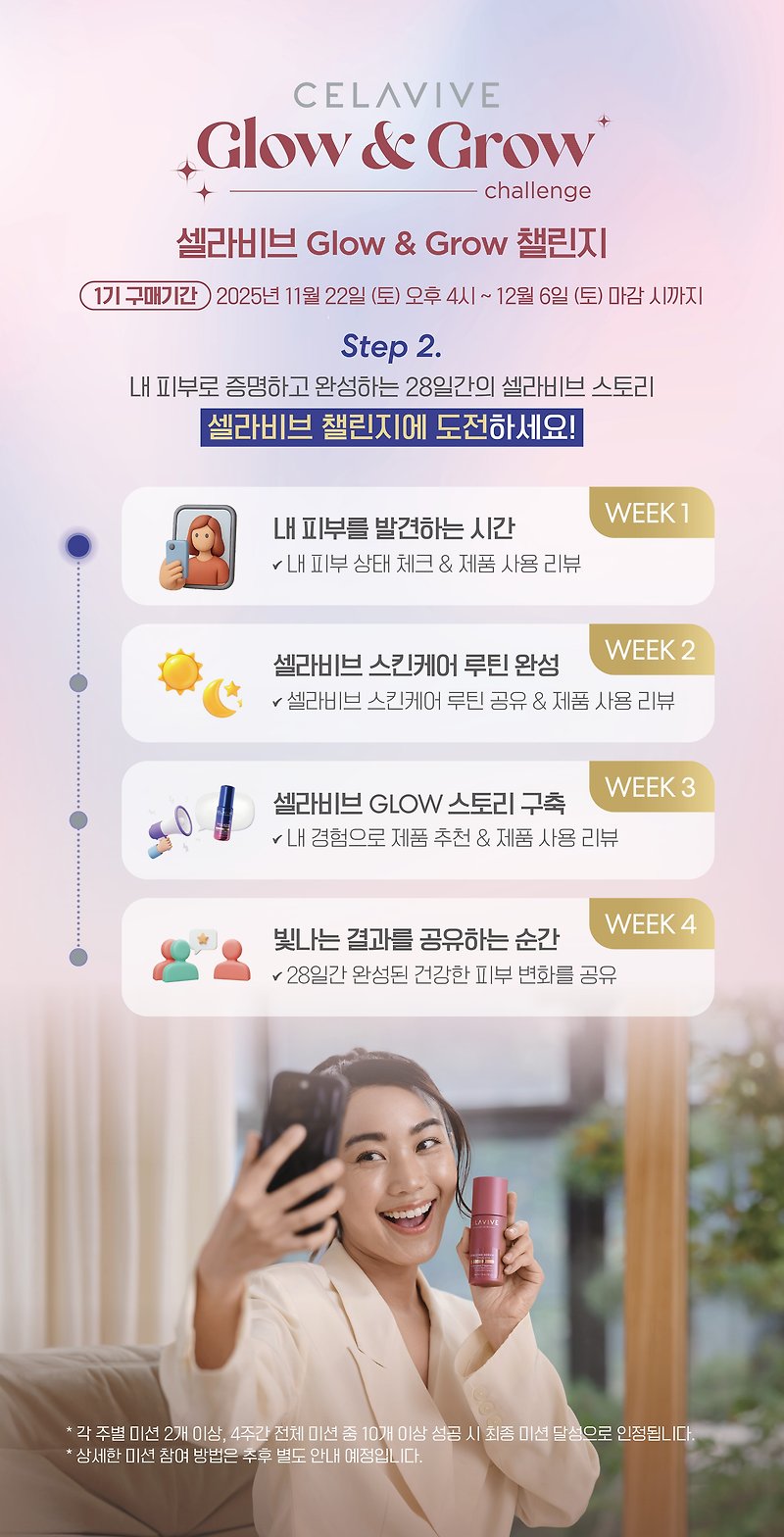 이런 유의 이벤트들 다 비슷하겠지? 하고 봤는데, 셀라비브 Glow & Grow는 구성·보상·루틴·참여 동기부여가 정말 잘 짜여 있어요.