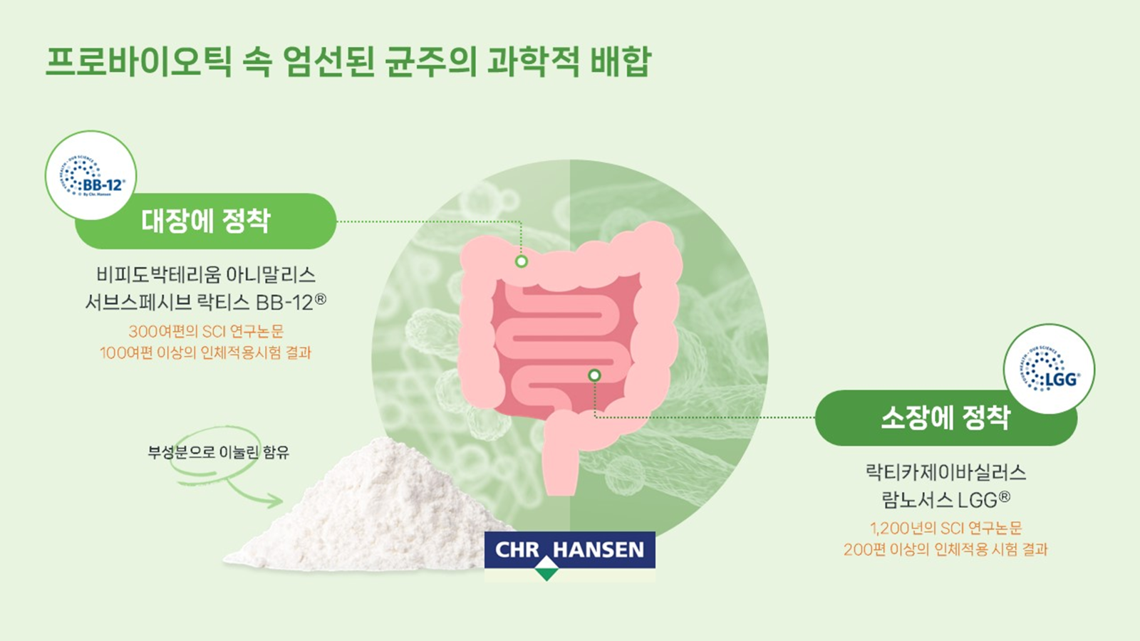 ✅ 비피도박테리움 아니말리스 서브스페시스 락티스 BB-12와 락티카제이바실러스 람노서스 LGG를 50:50으로 균형 배합