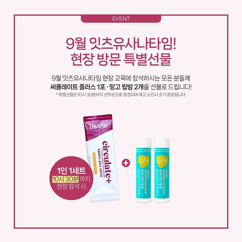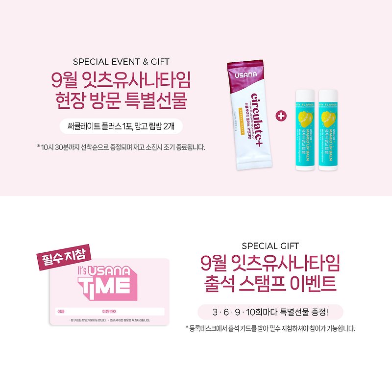 이번 9월 행사에서는 오전 10시 30분까지 도착한 현장 참석자 전원에게 다음과 같은 특별 선물이 제공되어요.