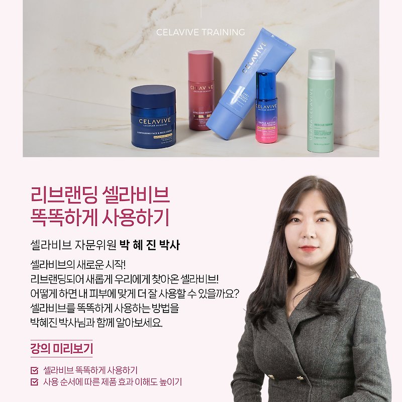 셀라비브 자문위원 박혜진 박사님이 제품의 기능과 사용법, 피부 타입별 추천 순서까지 상세하게 소개해주실거에요.