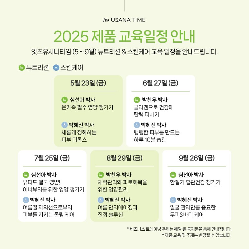 유사나가 진행하는 대표 교육 프로그램, ‘잇츠유사나타임(It’s USANA Time)’이 2025년 5월에도 돌아왔습니다.