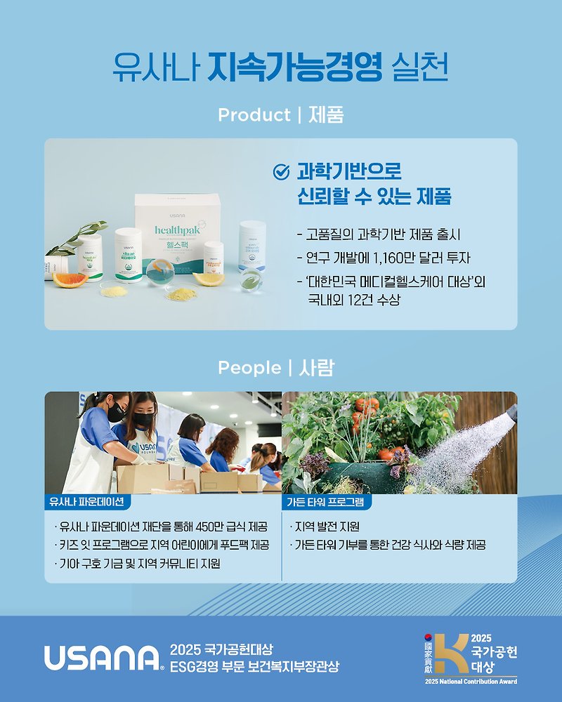 글로벌 웰니스 기업 유사나가 2025 국가공헌대상 ESG경영 부문에서 보건복지부 장관상을 수상하며 또 한 번 주목받고 있습니다. 이번 수상은 단순한 영예를 넘어, 유사나가 실천해온 지속 가능경영의 결실을 보여주는 상징적인 사건이었는데요. 특히 친환경 패키지 도입, 사회공헌 활동, 사람 중심 가치 실현 등의 노력이 높은 평가를 받았습니다.